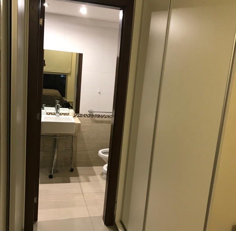Palieres con pisos porcelanato de importantes medidas y zócalos de madera.